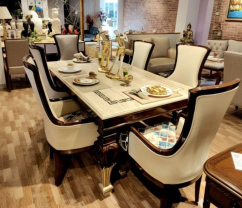 Elegant dining furniture designed for comfort and durability, perfect for family meals, gatherings, and enhancing dining room aesthetics.